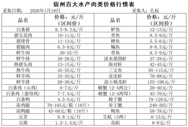 宿州百大2026-01-19价格行情