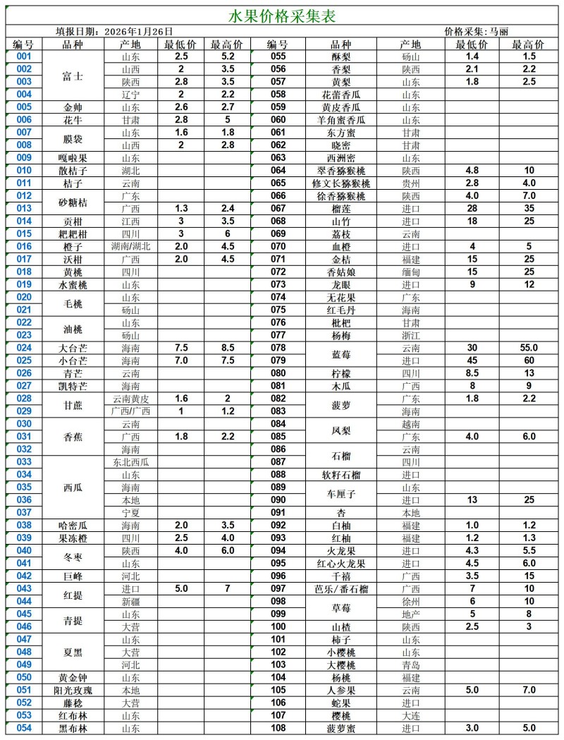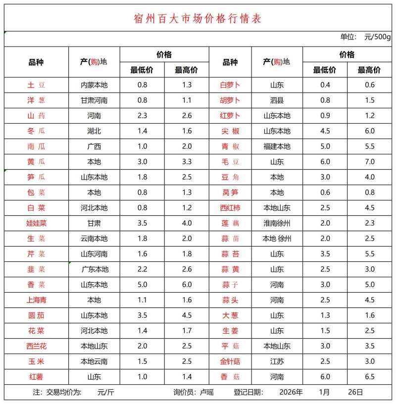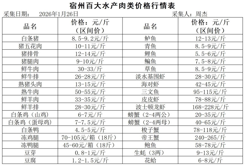 宿州百大2026-01-26价格行情