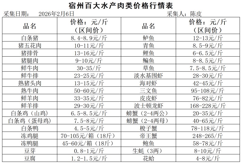 宿州百大2026-02-06价格行情