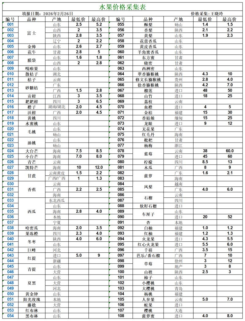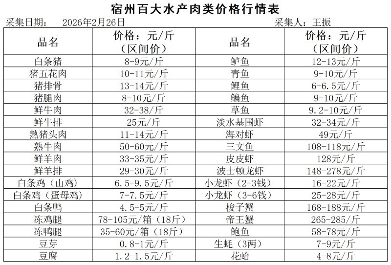 宿州百大2026-02-26市场价格行情