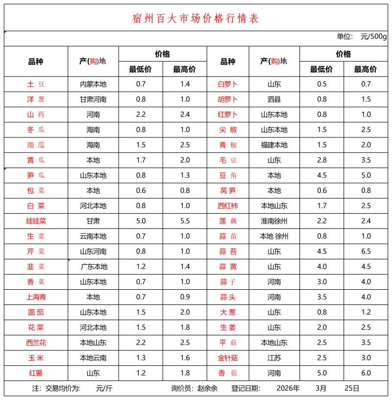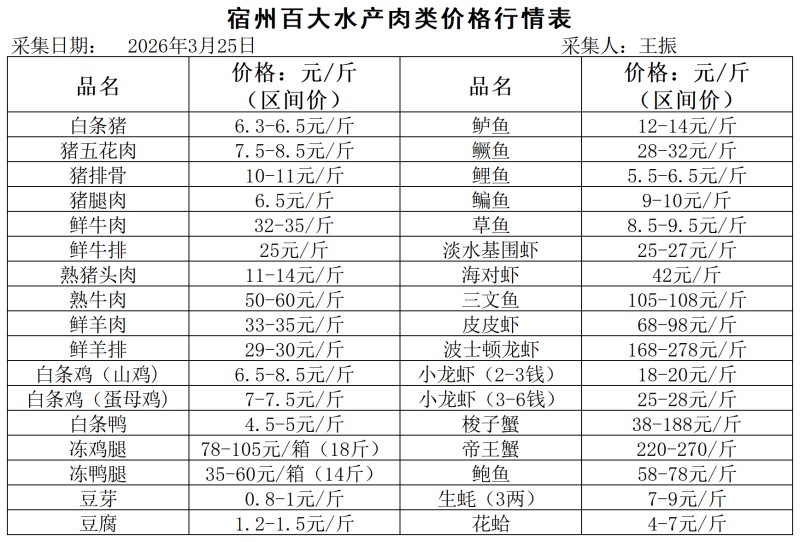 宿州百大2026-03-25价格行情