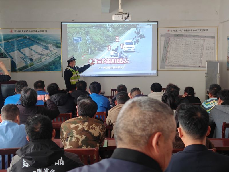 根据集团关于加强二季度道路交通安全工作的部署,结合公司“双创”培训计划,宿州百大公司于4月11日联合辖区交警、街道及社区部门,开展专项交通安全教育培训。旨在通过案例警示与普法宣传,强化员工及商户的道路安全意识,降低交通事故风险,助力构建文明、安全的交通环境。