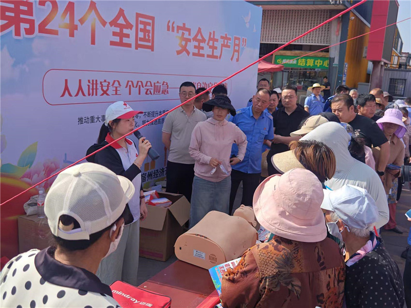 为深入贯彻落实习近平总书记关于安全生产的重要论述和指示精神,进一步强化全民安全意识,6月16日,宿州百大联合经开区应急管理局、消防救援大队、市红十字救援队等职能部门,在市场内组织开展以“人人讲安全、个个会应急——查找身边安全隐患”为主题的安全生产宣传咨询日活动,推动安全理念深入人心。