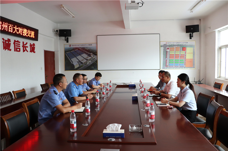 宿州百大董事长王静对祖传文行长一行的到来表示热烈欢迎,王董简要介绍了宿州百大的基本情况、业务经营模式及市场发展方向。他指出,通过此次深入交流会谈,我司将进一步加强和邮储银行宿州分行的交流,推动银企更深入的合作,同时对邮储银行宿州分行的工作开展表示支持。争取早日实现合作,开创互利共赢的新局面。