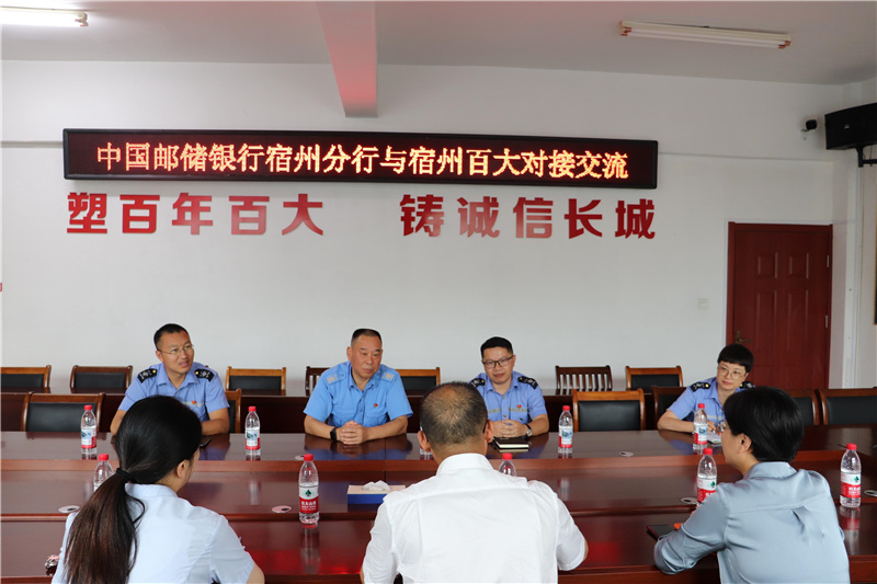 2025年6月17日下午,邮储银行宿州分行行长祖传文、宿州分行个人金融部总经理程艳梅、淮河西路支行行长吴肖宁一行莅临宿州百大开展合作交流。宿州百大董事长王静热情接待并组织召开合作交流座谈会,总经理助理赵伟、总经理助理王进,财务部副部长许皖侠陪同参加。